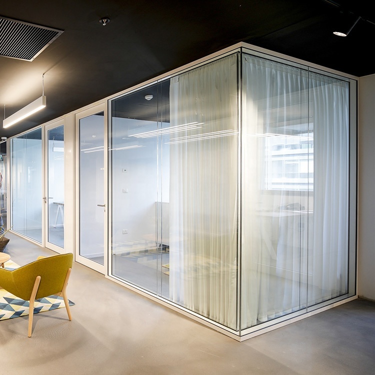 Pareti divisorie per uffici in alluminio modulari di alta gamma con doppia vetrata